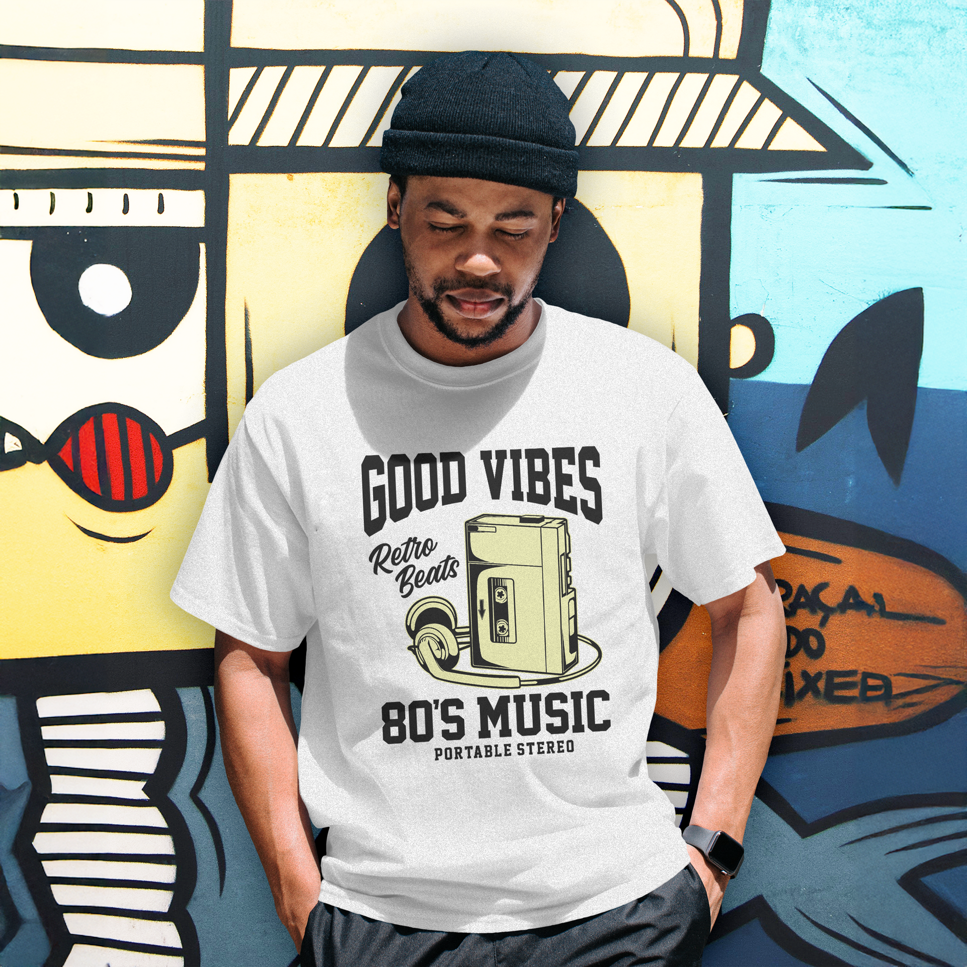 Good Vibes Retro Beats Vintage Cassette Player Design, 80s 90s Throwback Graphic Tee