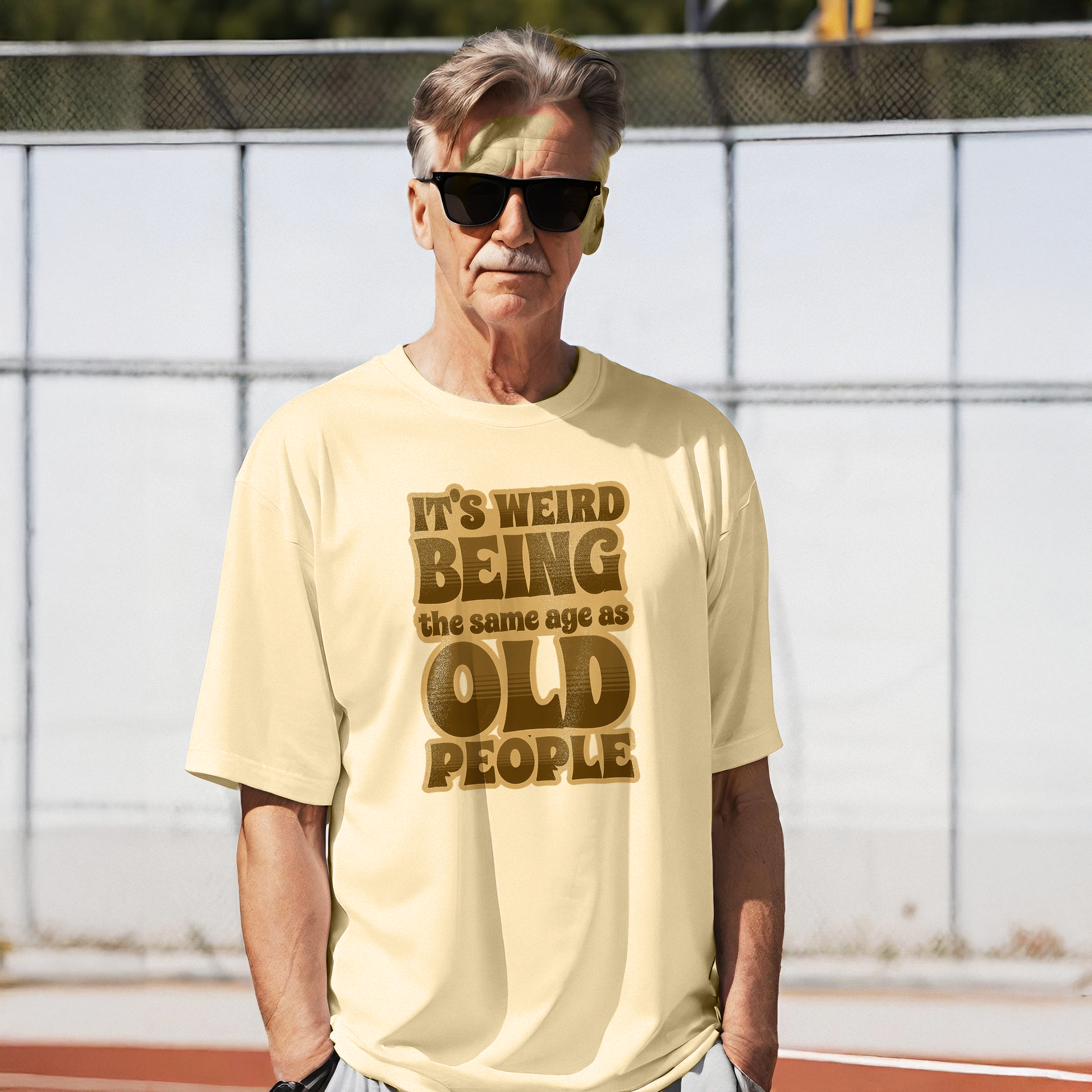 Embrace aging with humor and style with this funny "It's Weird Being the Same Age as Old People" t-shirt! Designed for those with a great sense of humor about getting older, this vintage-inspired typography design is perfect for birthdays, retirement parties, and everyday laughs.