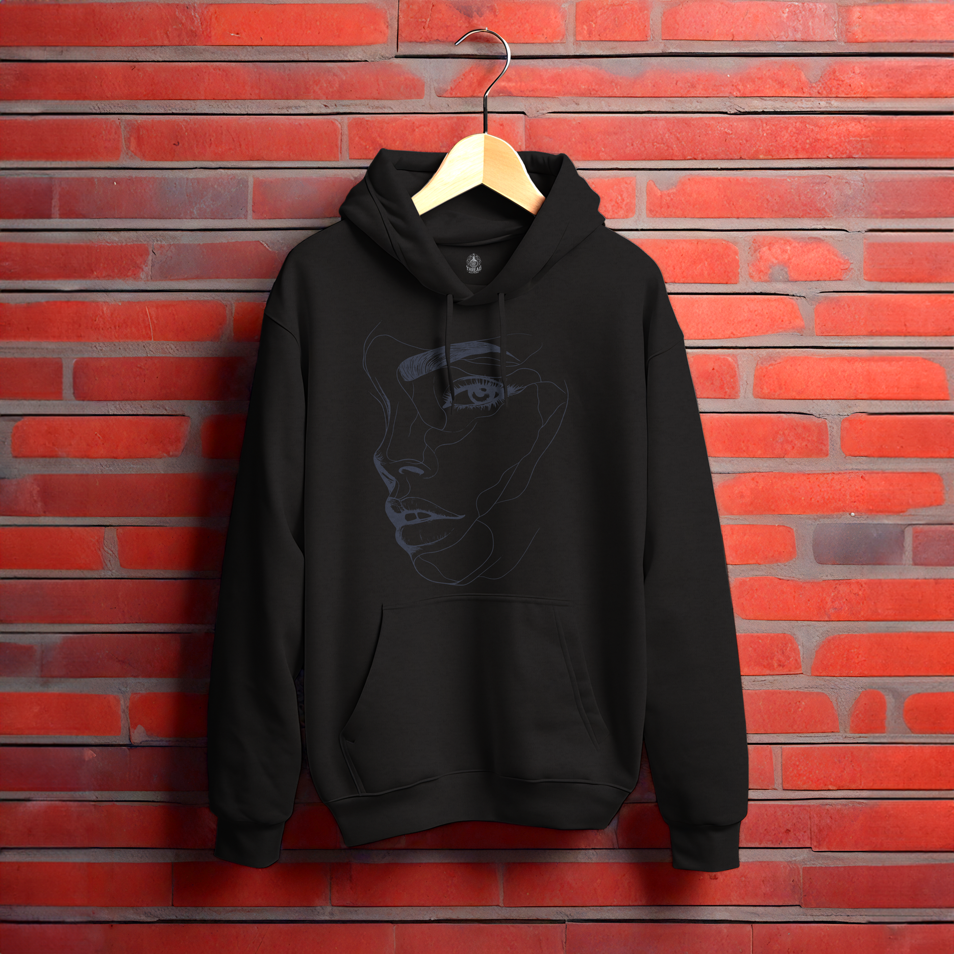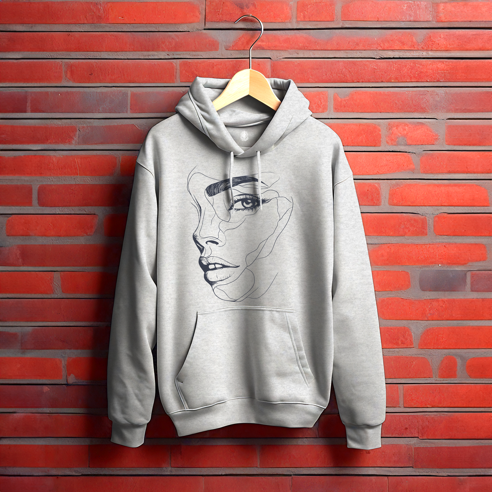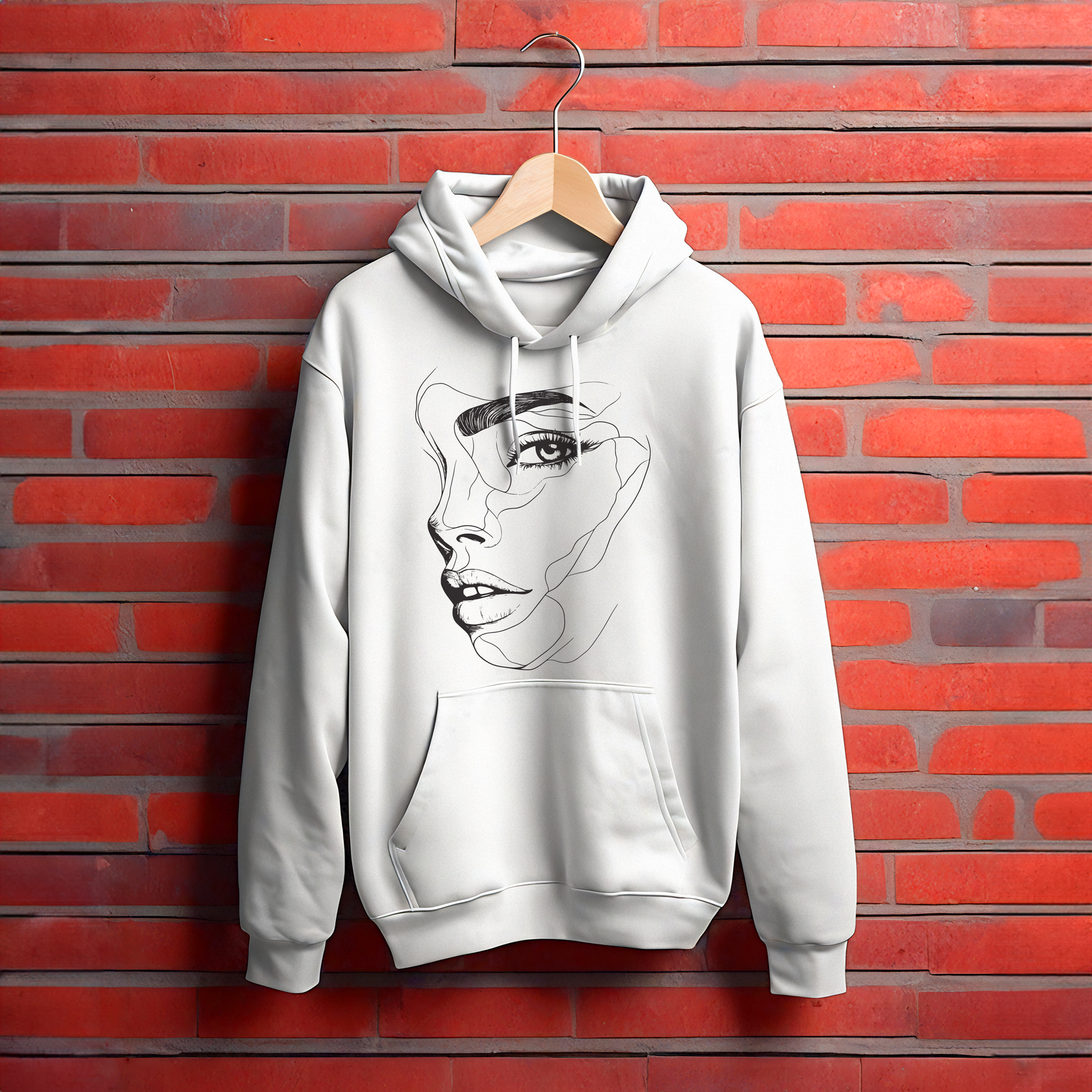 This design features a minimalist outline of a young, beautiful woman’s face. The simplicity of the lines captures her graceful features and confident eyes that express independence and strength. Her expression is serene yet determined, symbolizing self-assurance. The design uses negative space cleverly, leaving the woman’s features open and unembellished, creating a striking contrast with the shirt’s color. This understated yet powerful illustration conveys a message of beauty, confidence, and independence in its elegant minimalism.