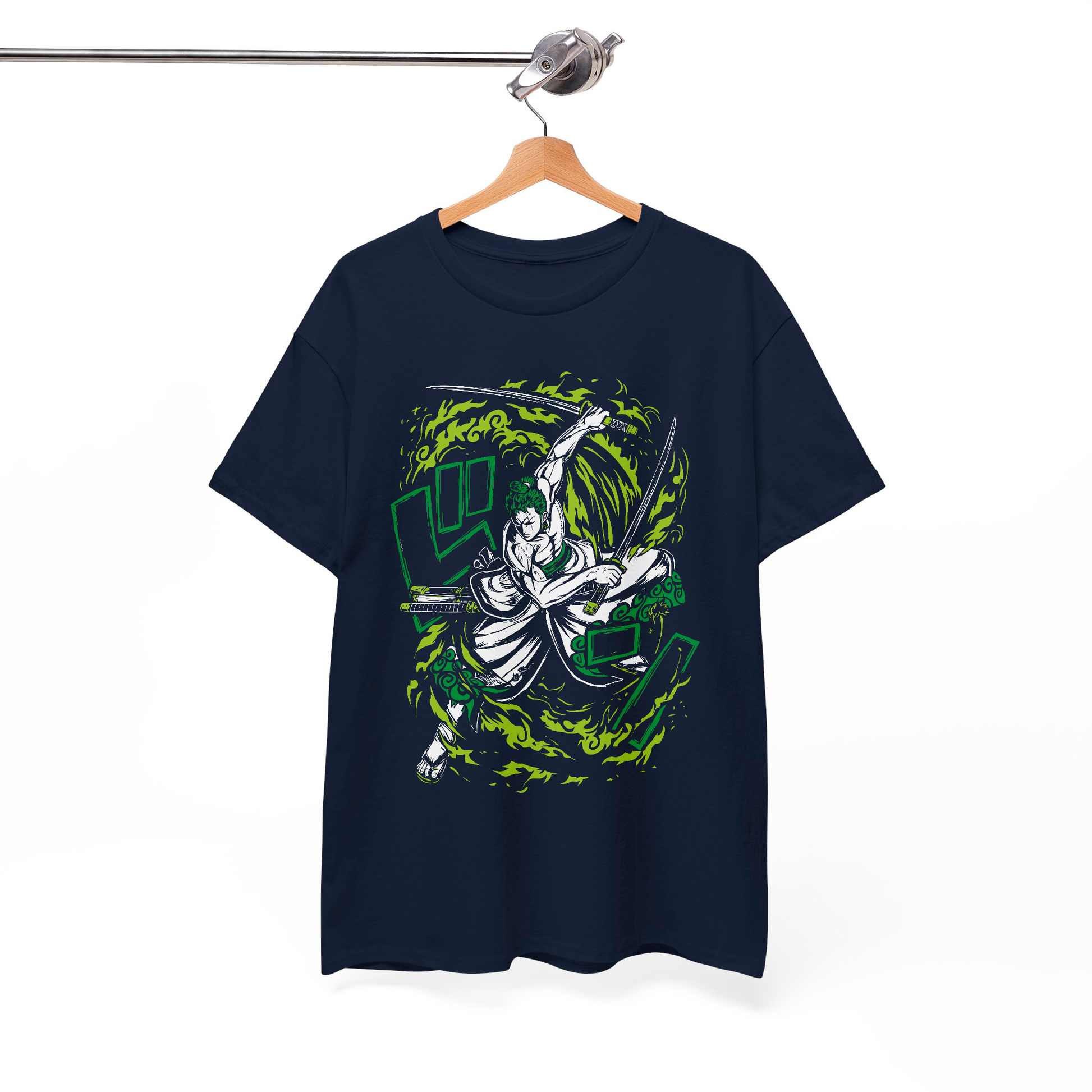 Unleash your inner swordsman with this "Pirate Hunter" Zoro Anime T-Shirt, inspired by the legendary Three-Sword Style warrior from One Piece. Featuring a bold and dynamic design, this premium cotton tee is perfect for anime lovers, manga fans, and those who admire the strongest samurai in the anime world. The black and green aesthetic adds a stylish touch, making it ideal for conventions, casual outings, or as a standout piece in any anime collection.